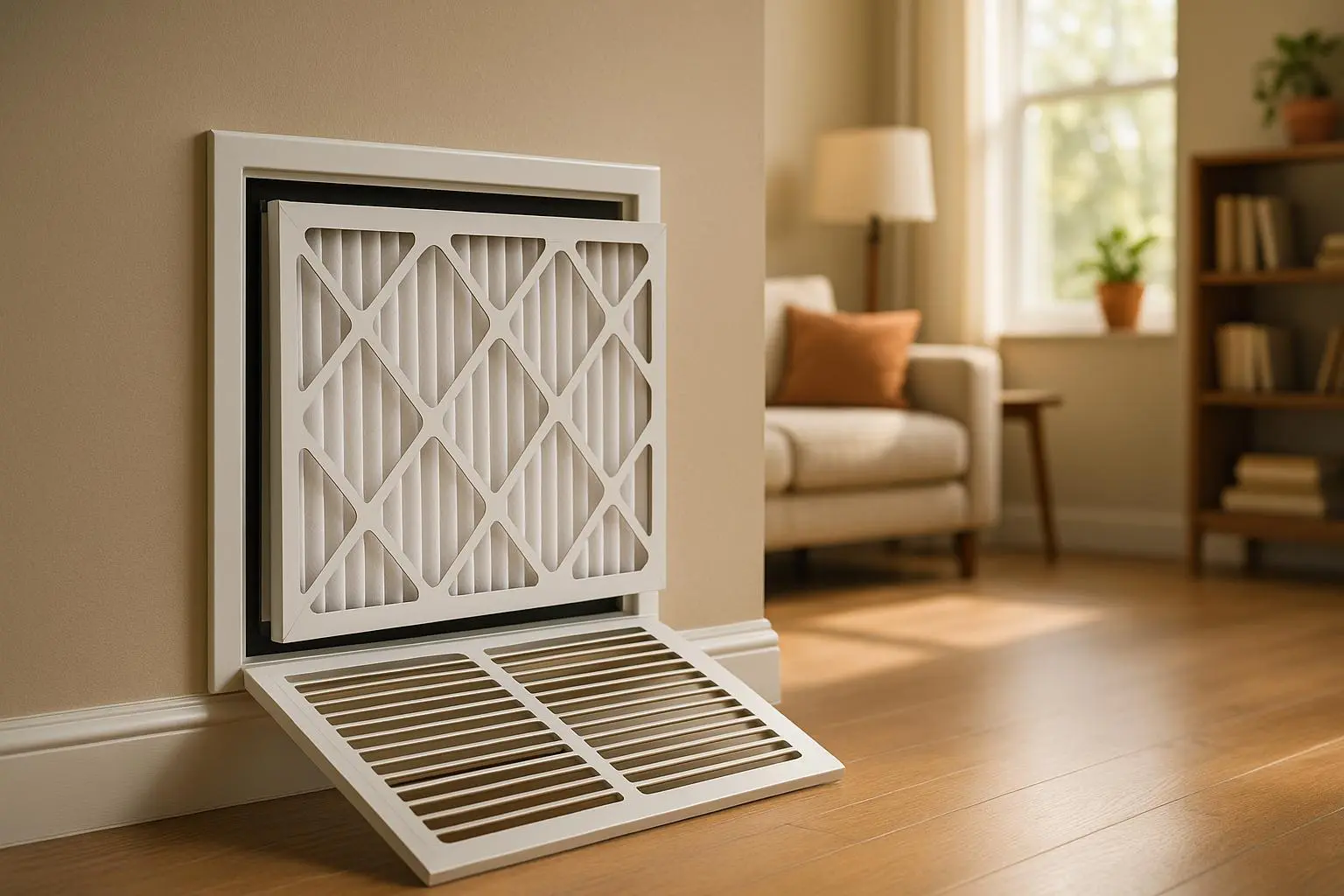 A futuristic and energy-efficient HVAC system in a modern Chicago home, showcasing the latest 2025 heating and cooling technologies.