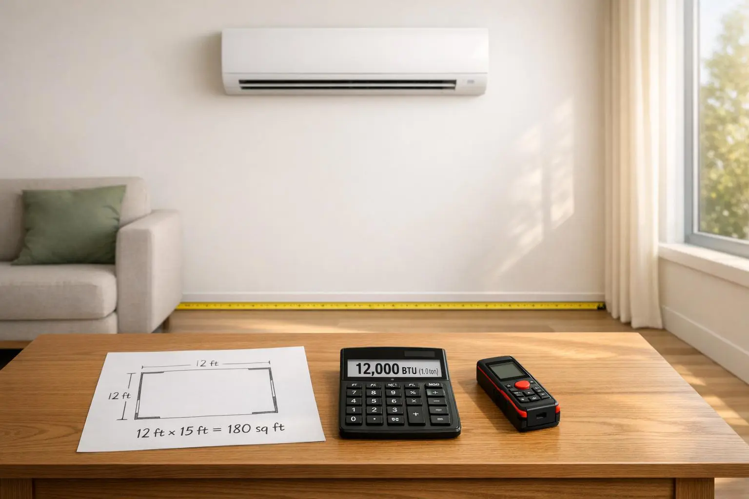Right-size your air conditioner: measure room area, calculate BTUs, convert to tons, adjust for sunlight…